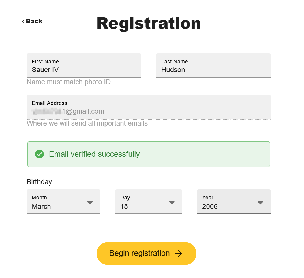 - 输入之前在 fauxid.com 生成的出生日期,点击“下一步”。
