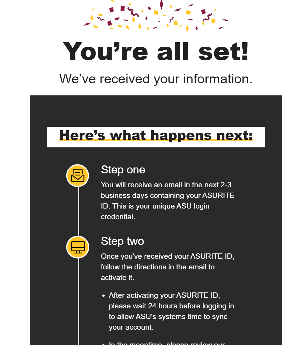 - 注册完成后,留意您的个人邮箱(建议Gmail/Outlook),查收 ASU 发来的激活邮件。